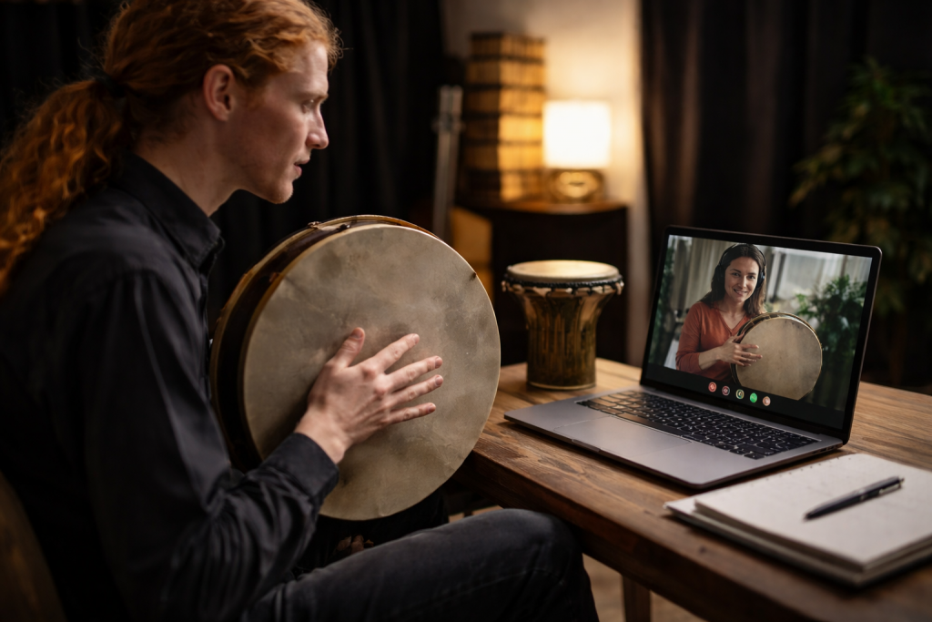 Individuelle Online-Einzelstunden für Rahmentrommel und andere Percussion – flexibel, persönlich und ortsunabhängig.